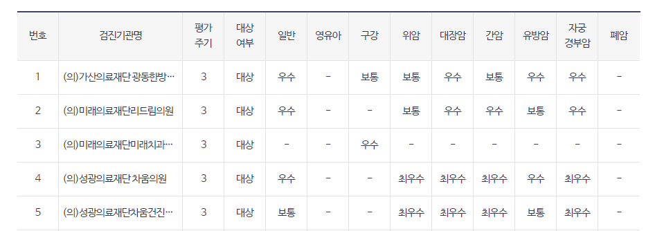 안전한 건강검진 찾기 평가자료